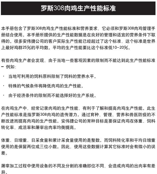 羅斯308商品肉雞生產(chǎn)性能標(biāo)準(zhǔn) |