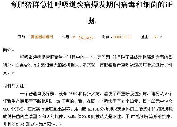 育肥豬群急性呼吸道疾病爆發(fā)期間病毒和細菌的證據(jù) |