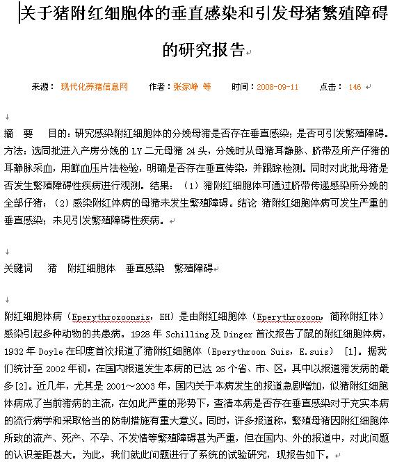 關(guān)于豬附紅細(xì)胞體的垂直感染和引發(fā)母豬繁殖障礙的研究報(bào)告 |