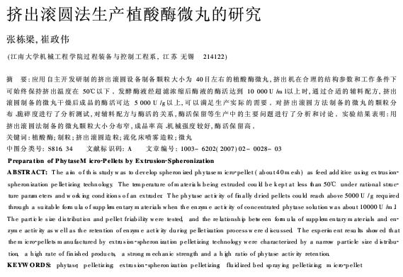 擠出滾圓法生產(chǎn)植酸酶微丸的研究 |