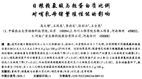 日糧賴氨酸與粗蛋白質(zhì)比例對(duì)哺乳母豬繁殖性能的影響.pdf |