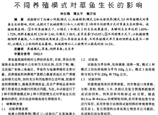 草魚系列 不同養(yǎng)殖模式對(duì)草魚生長的影響 |