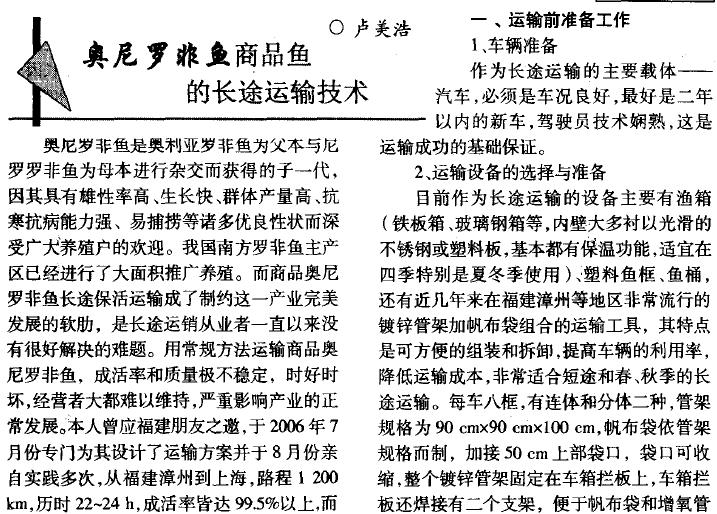 羅非魚系列 奧尼羅非魚商品魚的長途運輸技術(shù) |
