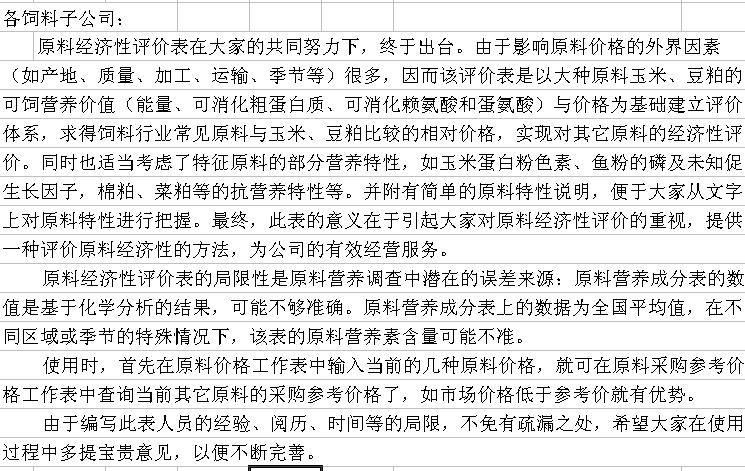 原料經(jīng)濟(jì)性評(píng)價(jià)表 |