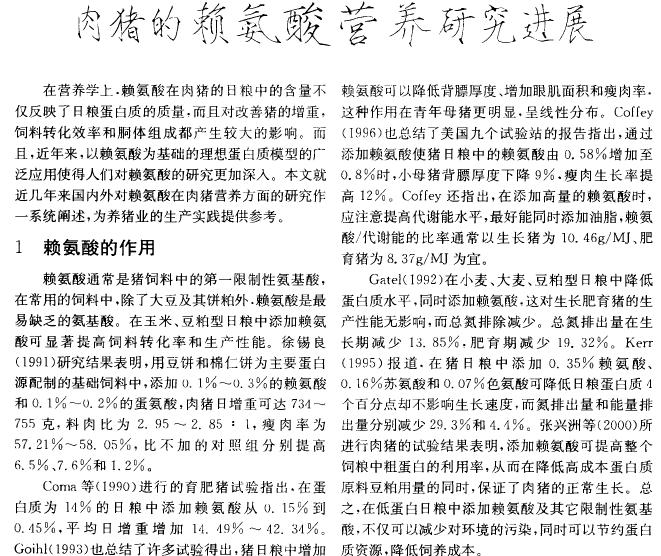 肉豬的賴氨酸營(yíng)養(yǎng)研究進(jìn)展 |