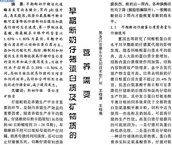 早期斷奶仔豬蛋白及礦物質營養(yǎng)需求 |