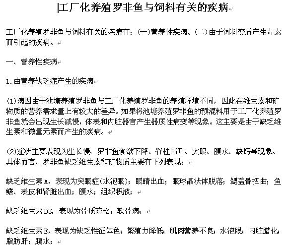 工廠化養(yǎng)殖羅非魚(yú)與飼料有關(guān)的疾病 |