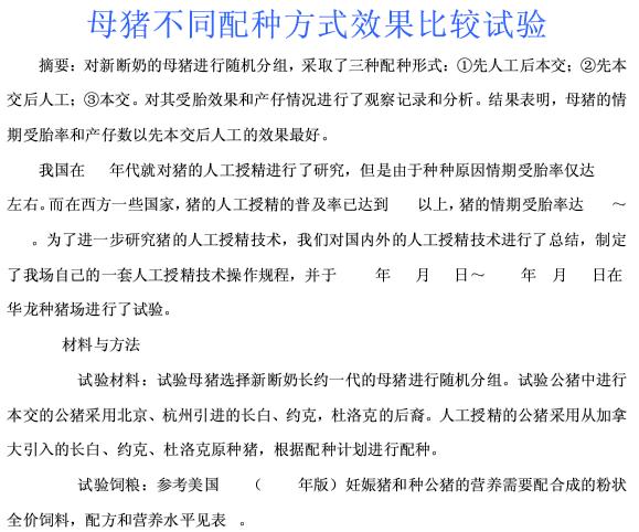母豬不同配種方式效果比較試驗(yàn) |