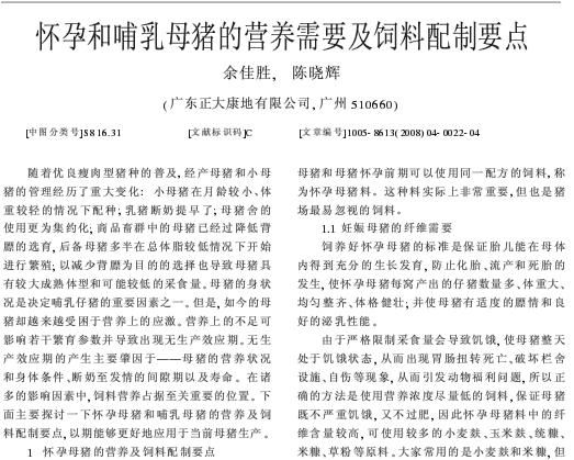 懷孕和哺乳母豬的營養(yǎng)需要及飼料配制要點 |