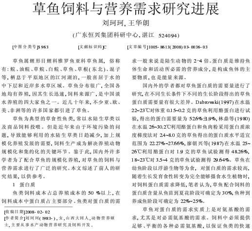 草魚(yú)飼料與營(yíng)養(yǎng)需求研究進(jìn)展 |