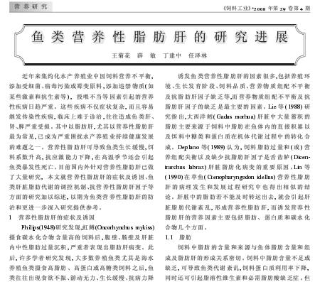 魚類營養(yǎng)性脂肪肝的研究進展 |
