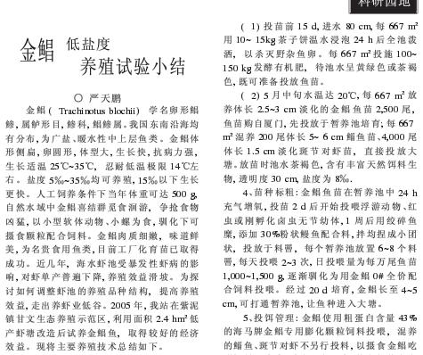 金鯧低鹽度養(yǎng)殖試驗(yàn)小結(jié) |