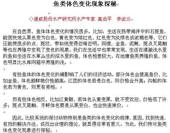 通威專(zhuān)家資料《魚(yú)類(lèi)體色變化現(xiàn)象探秘》 |