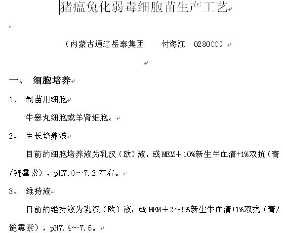 豬瘟兔化弱毒細(xì)胞苗生產(chǎn)工藝 |