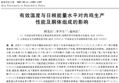 有效溫度和日糧能量水平對對肉雞生產(chǎn)性能和胴體組成的影響 |