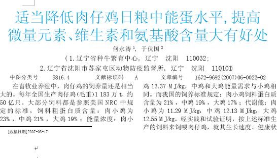 適當降低肉仔雞日糧能蛋水平、提高維生素、微量元素和氨基酸含量大有好處 |