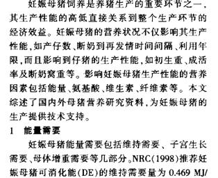 妊娠母豬的營(yíng)養(yǎng)需要的研究進(jìn)展 |