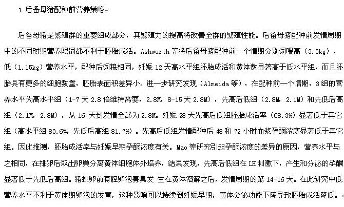 配種前營養(yǎng)策略對母豬妊娠早期胚胎成活的影響 |
