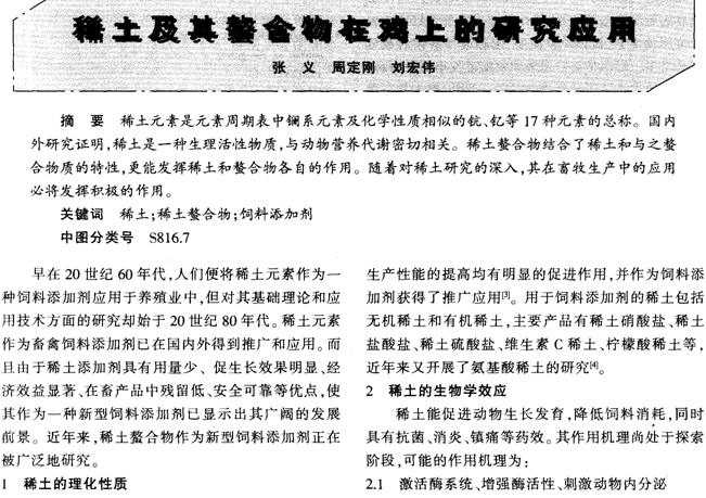 稀土及其鏊合物以雞上的研究應(yīng)用 |