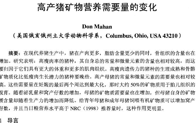 高產(chǎn)豬礦物營養(yǎng)需求量的變化 |