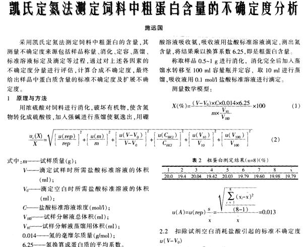 凱氏定氮法測(cè)定飼料中粗蛋白質(zhì)含量的不確定度分析 |