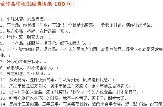 牛根生經(jīng)典語(yǔ)錄100句 |