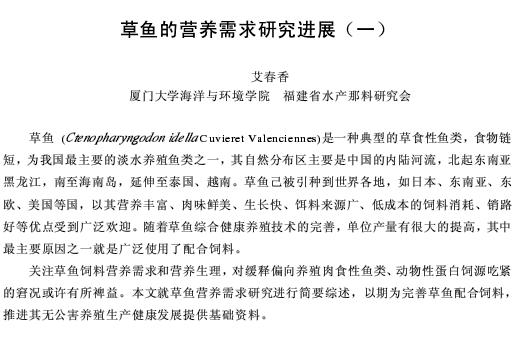 草魚(yú)的營(yíng)養(yǎng)需求研究進(jìn)展 |