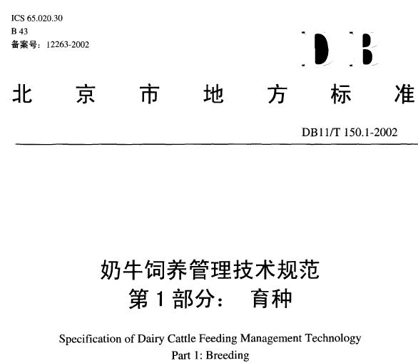 DB 11T 150.1-2002 奶牛飼養(yǎng)管理技術(shù)規(guī)范第1部分育種 |
