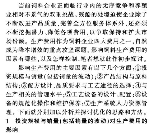 影響飼料生產(chǎn)費(fèi)用的因素分析及控制淺談 |