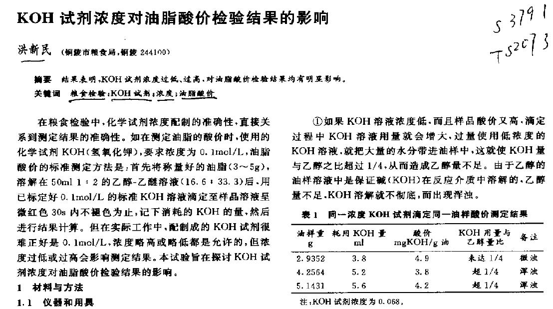 KOH試劑濃度對(duì)油脂酸價(jià)檢驗(yàn)結(jié)果的影響.pdf |