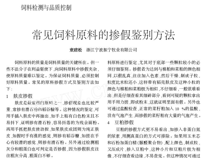 常見(jiàn)飼料原料的摻假鑒別方法 |