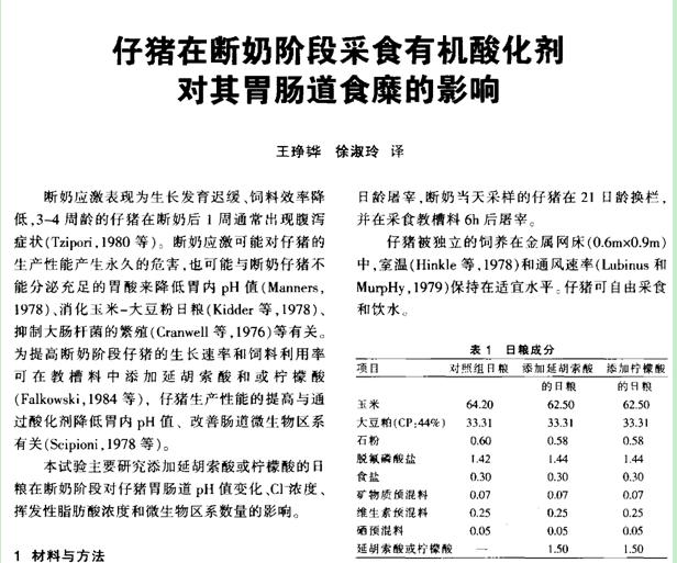 仔豬在斷奶階段采食有機酸化劑對其胃腸道食糜的影響 |