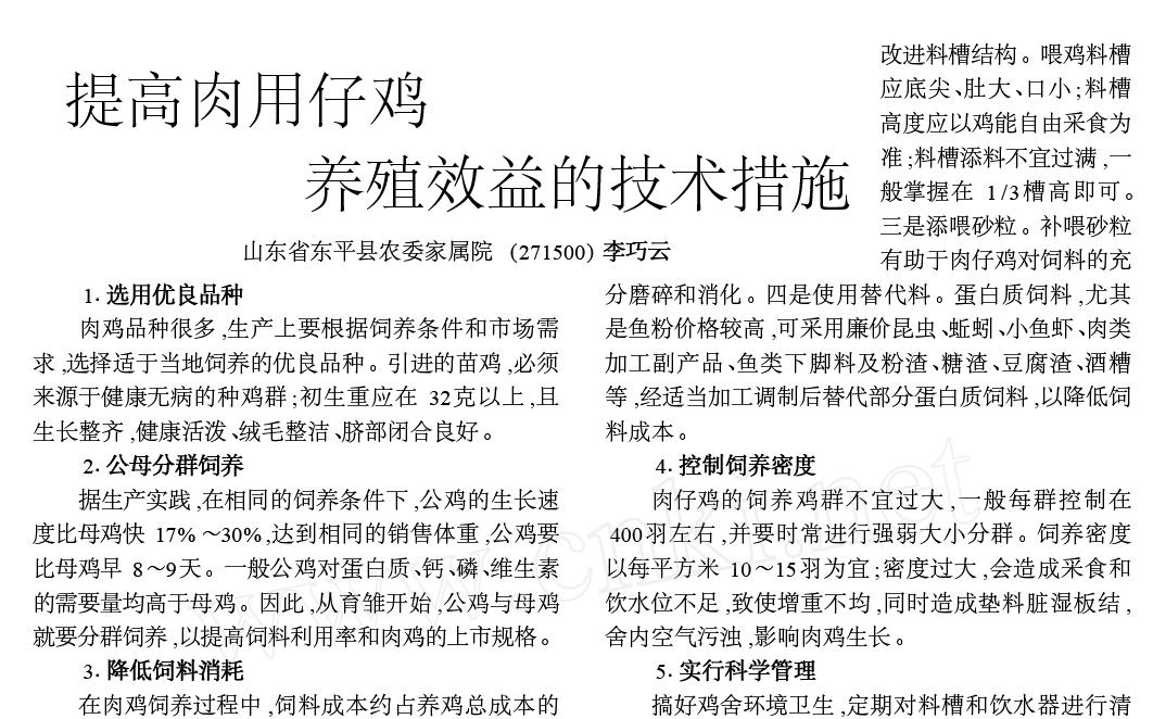 提高肉用仔雞養(yǎng)殖效益的技術(shù)措施 |