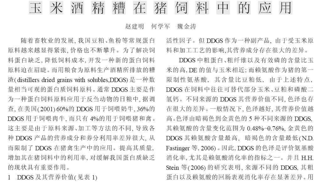 玉米酒精糟在豬飼料中的應(yīng)用 |