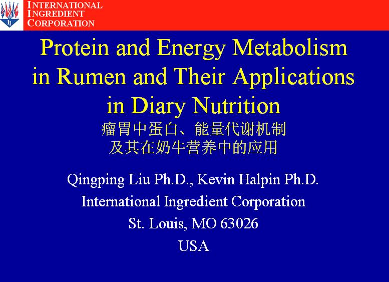 Protein and Energy Metabolism in Rumen and Their A |
