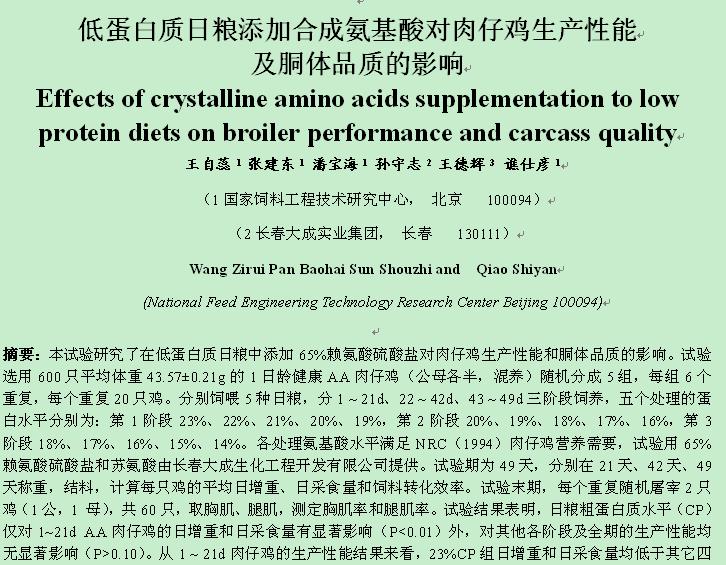 低蛋白質(zhì)日糧添加合成氨基酸對(duì)肉仔雞生產(chǎn)性能 |