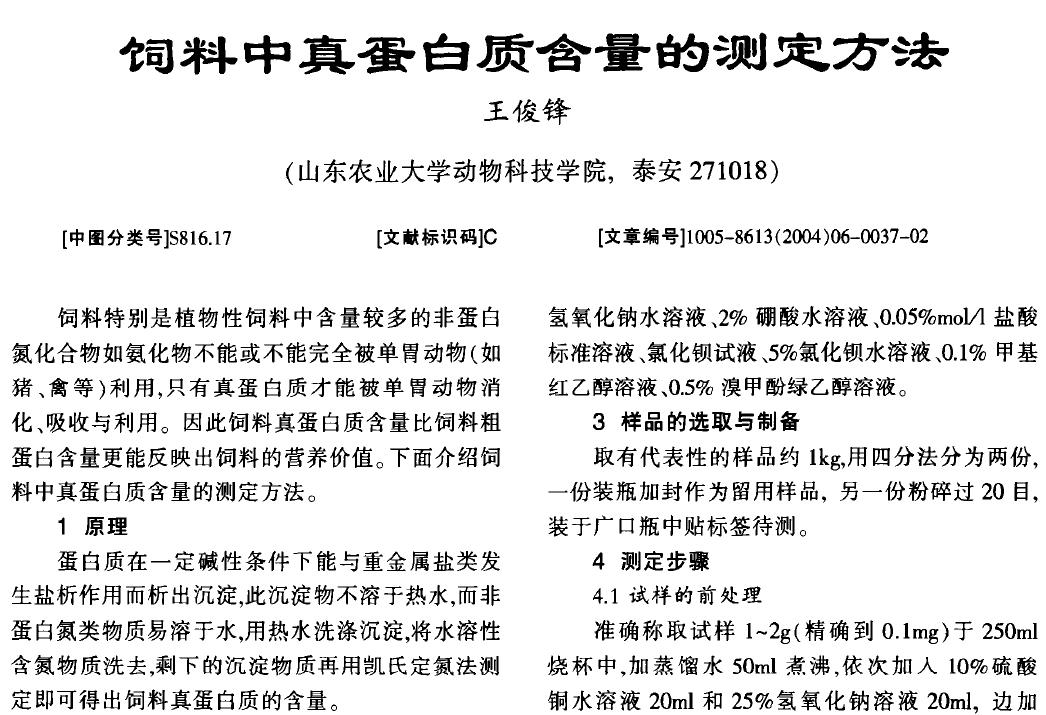飼料中真蛋白質(zhì)含量的測(cè)定方 |
