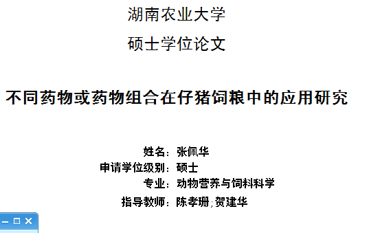 不同藥物或藥物組合在仔豬飼糧中的應(yīng)用研究 |