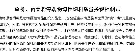 魚粉、肉骨粉等動物源性飼料質量關鍵控制點 |
