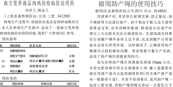 南方籠養(yǎng)商品肉雞的疫病防治用藥 |
