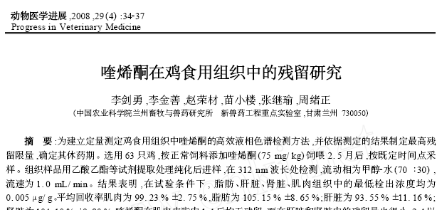 喹烯酮在雞食用組織中的殘留研究 |