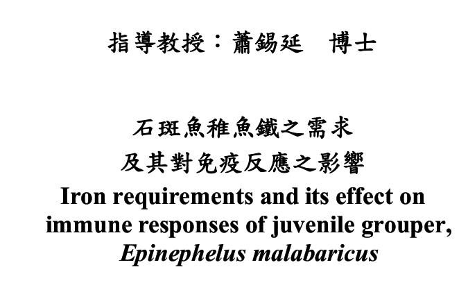 石斑魚(yú)稚魚(yú)對(duì)鉄和銅之需求研究 |