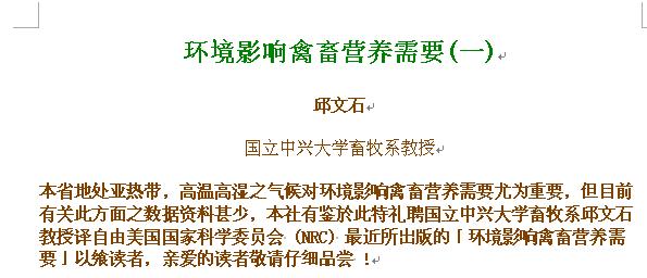 環(huán)境影響禽畜營養(yǎng)需要 |