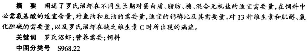 羅氏沼蝦的營(yíng)養(yǎng)需要研究 |
