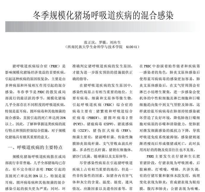 冬季規(guī)?;i場(chǎng)呼吸道疾病的混合感染 |