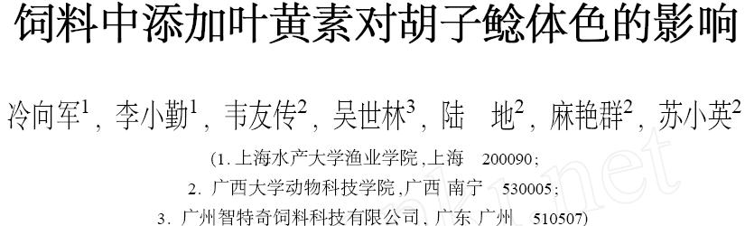 飼料中添加葉黃素對胡子鯰體色的影響 |