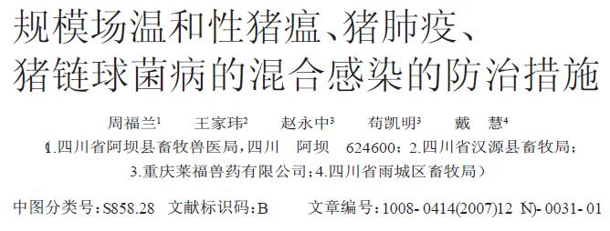 規(guī)模場(chǎng)溫和性豬瘟_豬肺疫_(dá)豬鏈球菌病的混合感染的防治措施.pdf |