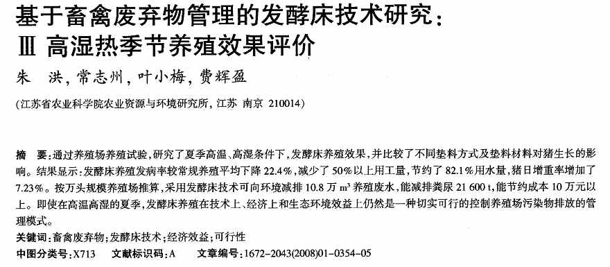 基于畜禽廢棄物管理的發(fā)酵床技術研究 Ⅱ.接種劑的應用效果研究 |