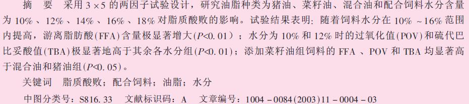 水分和油脂種類對配合飼料脂質酸敗的影響 |