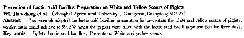 乳酸芽孢桿菌對(duì)仔豬黃白痢的預(yù)防 |